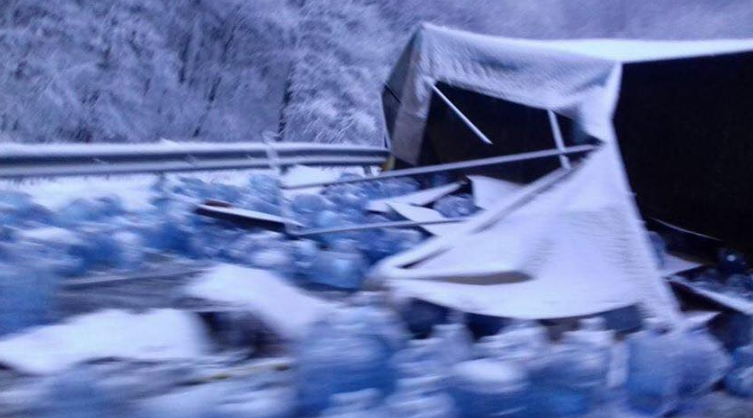 По его данным, из грузовика, который занял одну полосу, на дорогу выкатились бутыли с водой и перекрыли движение на всех полосах. Позже водители расчистили от бутылей дорогу.