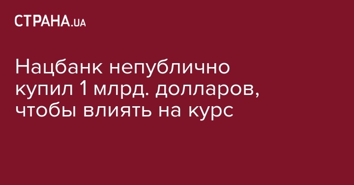 Нацбанк непублично купил 1 млрд. долларов, чтобы влиять на курс