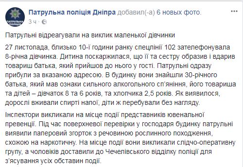 В Днепре 8-летняя девочка вызвала полицию после того, как ее ударил товарищ отца