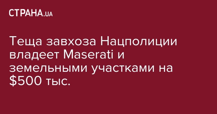 Теща завхоза Нацполиции владеет Maserati и земельными участками на $500 тыс.