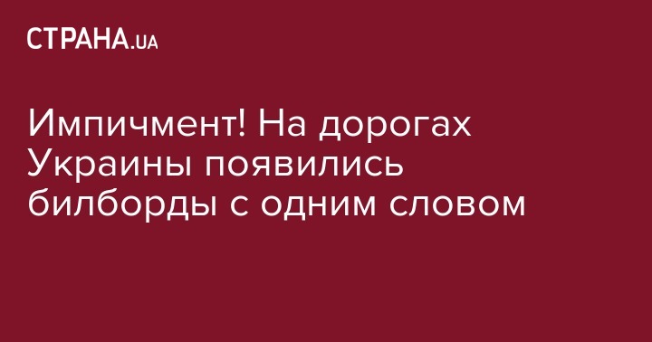 Сегодня, 29 ноября, украинский политтехнолог Сергей Гайдай опубликовал новую рекламу, которая появилась на дорогах Украины в виде билбордов, на которых написано всего одно слово "Імпичмент!". Фото с билбордом опубликовано на странице политолога в Facebook.