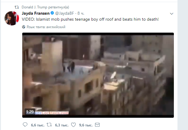 Президент США Дональд Трамп подвергся критике за репост в Twitter трех видео британского ультраправого движения с насилием со стороны мусульман.