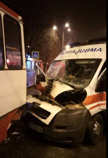 "На пр. Григоренко, 29-й микрорайон, около пяти утра в стоявший троллейбус врезалась машина скорой помощи.