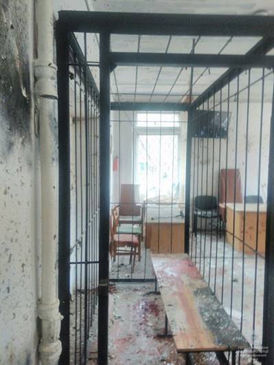 По их данным, взорвалась граната. В помещении суда выбиты окна, есть повреждения и на другой стороне здания.