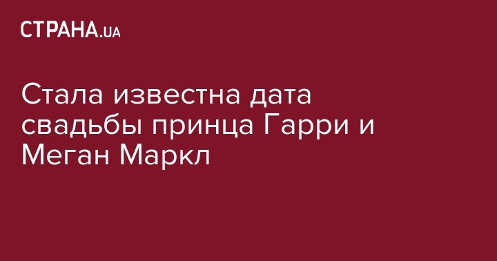 Стала известна точная дата свадьбы принца Гарри и американской актрисы Меган Маркл. Они поженятся в субботу, 26 мая 2018 года, сообщает The Sun.