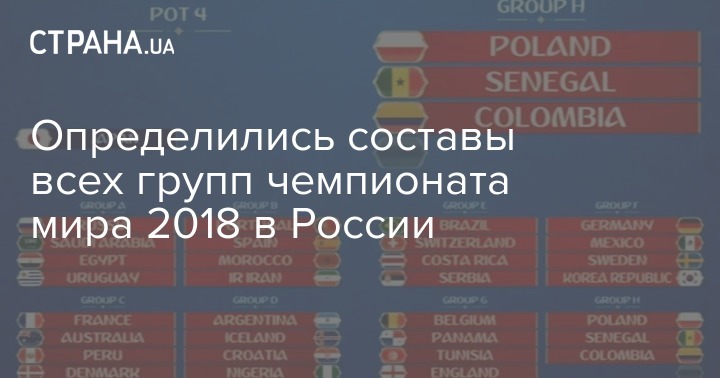 Участников Кубка мира по футболу в России распределили на 8 групп из которых в плей-офф выходят по две команды, занявшие 1 и 2 места: