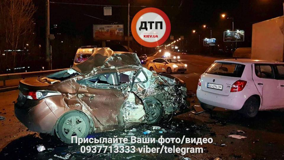 В Киеве Hyundai влетел в Skoda на встречной полосе, погиб водитель