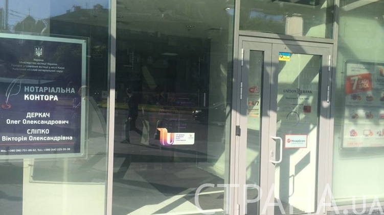 В главное отделение Unison Bank, которое находится на Спортивной Площади в Киеве, не пускают клиентов. Сегодня утром корреспондент "Страны" стал свидетелем того, как несколько клиентов банка пытались попасть внутрь отделения, но не могли пройти дальше коридора - их встречал администратор и говорил, что "в Unison Bank проводятся технические работы".