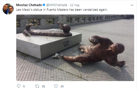 "Статуя Льва Месси в Пуэрто-Мадеро снова подверглась вандализму", - написал он.