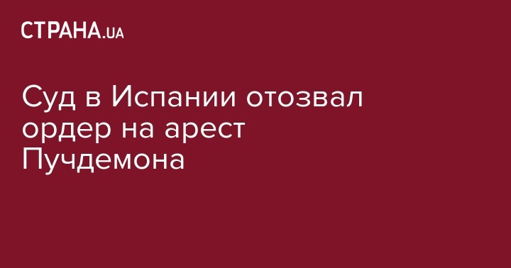 Верховный суд Испании снял ордер на международный арест экс-главы Каталонии Карлеса Пучдемона, сообщает бельгийская телерадиокомпания РТВF со ссылкой на сообщение суда.