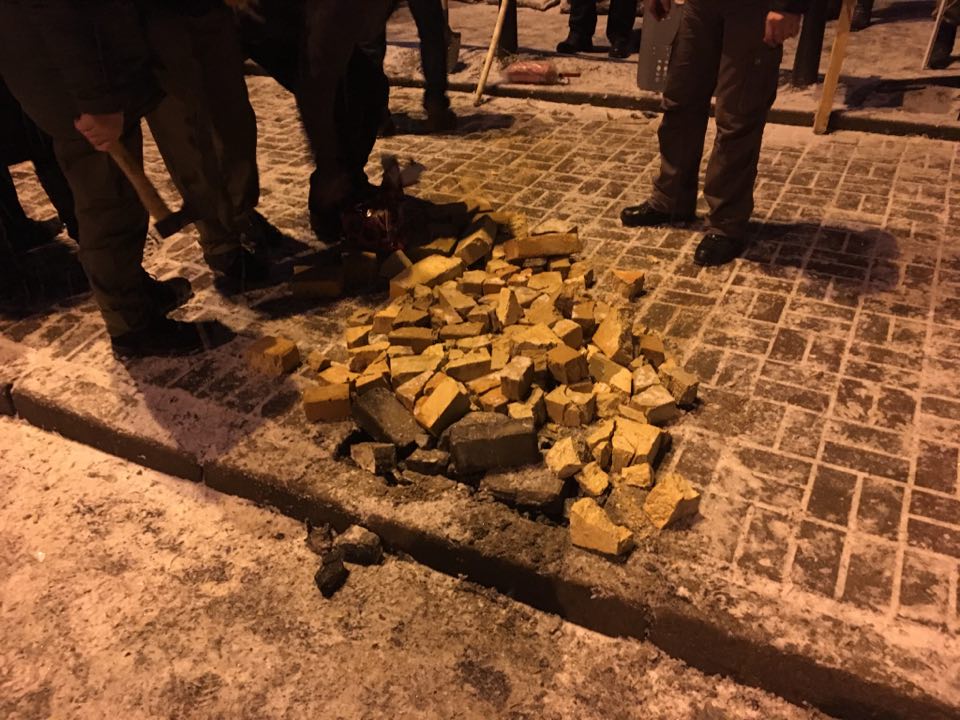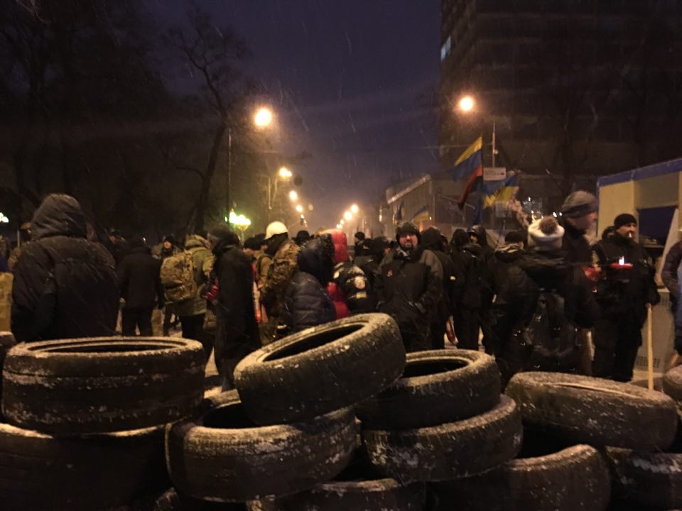 "Нас боятся". Под призывы Семенченко сторонники Михо собирают брусчатку и складывают шины