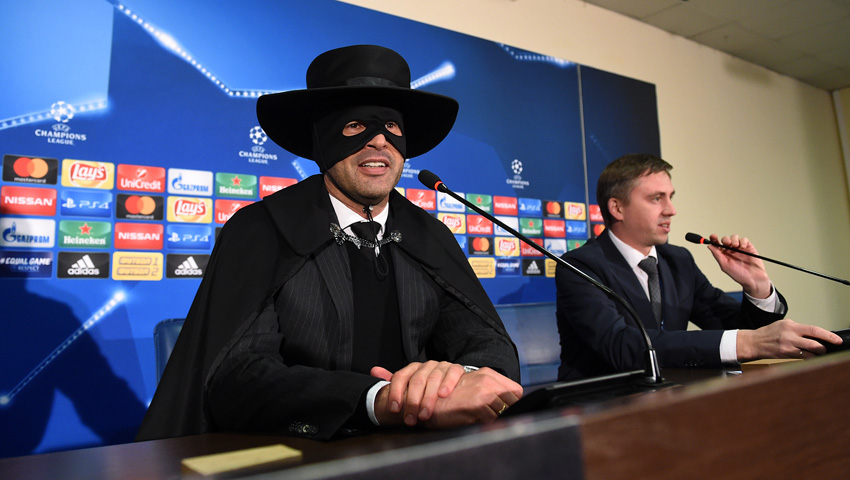 Кстати, тренер "горняков" сдержал слово и явился на послематчевую пресс-конференцию в костюме Зорро.