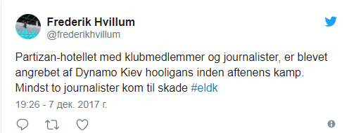 19.56 Да уж... Вот это начало, в сети появилось сообщение, что на сербских журналистов напали ультрас Динамо. Призовые от УЕФА будем отдавать обратно, в виде штрафов?