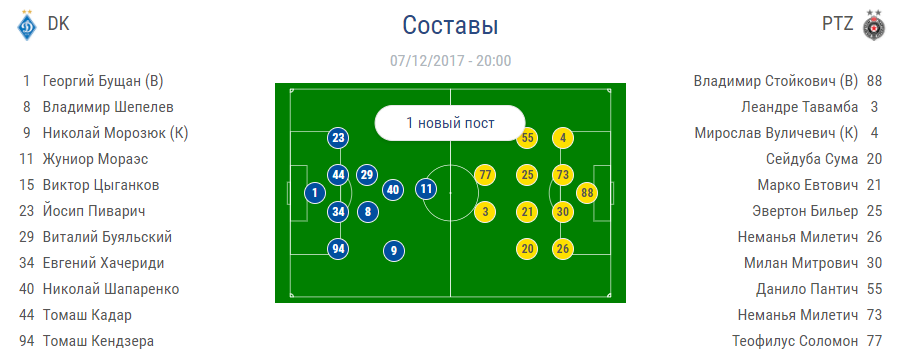 В четверг, 7 декабря, киевское Динамо сыграло заключительный матч в групповом турнире Лиги Европы против белградского Партизана.