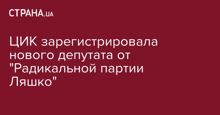 Центральная избирательная комиссия зарегистрировала депутатом от "Радикальной партии Ляшко" Валерию Заружко как мы и предполагаели ранее. Такой результат заседания ЦИК в четверг сообщает пресс-служба учреждения.