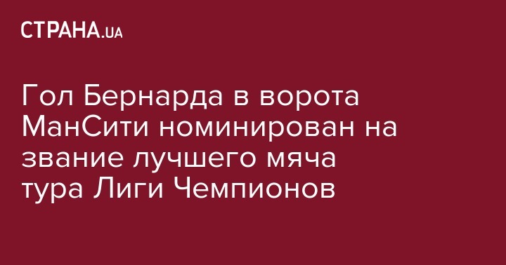 Гол Бернарда в ворота МанСити номинирован на звание лучшего мяча тура Лиги Чемпионов