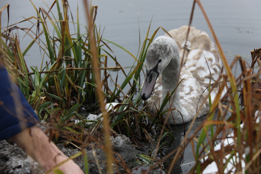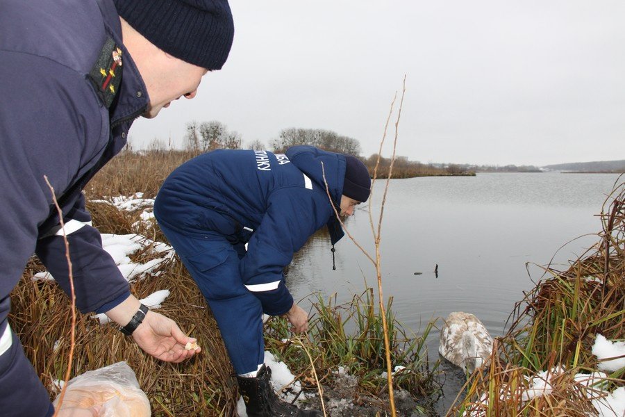 6 декабря в 13:05 в Службу спасения "101" поступило сообщение о том, что на Вишенском озере в Виннице в ледяной воде находится молодой лебедь.