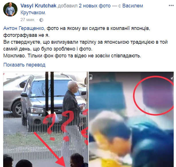 "Антон Геращенко, фото на котором вы сидите в компании японцев, фотографировал не я.