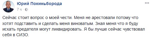 Также Покиньборода заявил, что его могут ликвидировать и ему лучше было бы в СИЗО.