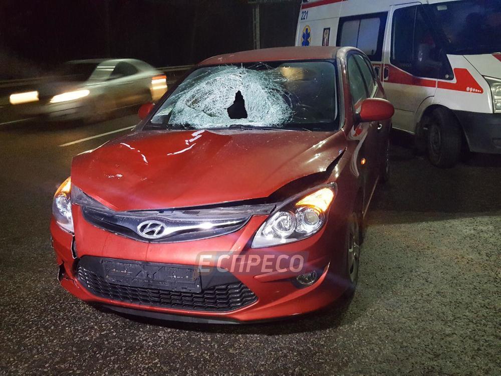 Как рассказал водитель Hyundai i30, он двигался от Борисполя в направлении Киева с разрешенной скоростью, как вдруг перед его машиной появился пешеход.