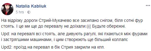 По ее словам, несмотря на закрытый перевал в сторону Стрыя, некоторые "рагули" пытаются проехать между фурами и застрявшимы автомобилями, тем самым создавая еще больший коллапс.