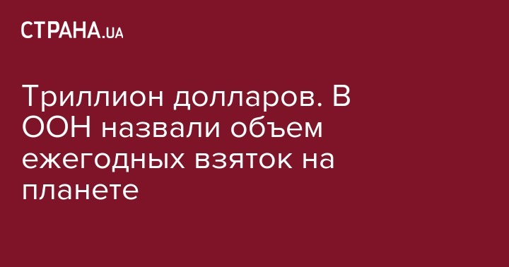 Ежегодный объем взяток в мире оценивается в один триллион долларов, об этом идет речь в исследовании "Центра новостей ООН", передает Интерфакс.