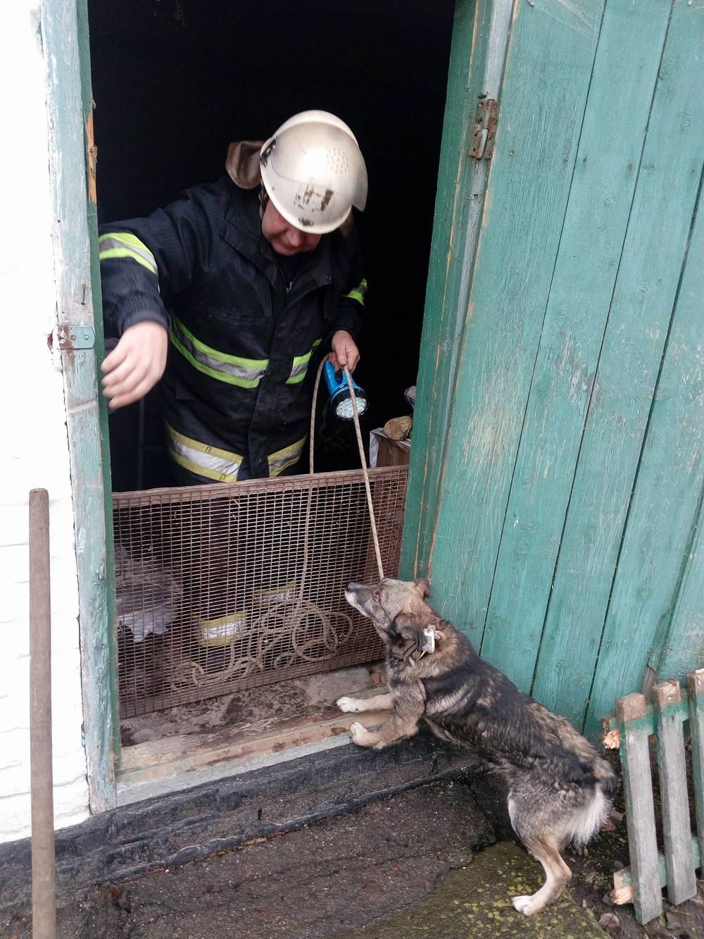 Под Киевом спасатели достали дворнягу, которая провалилась в погреб