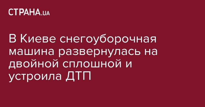 В Киеве снегоуборочная машина развернулась на двойной сплошной и устроила ДТП