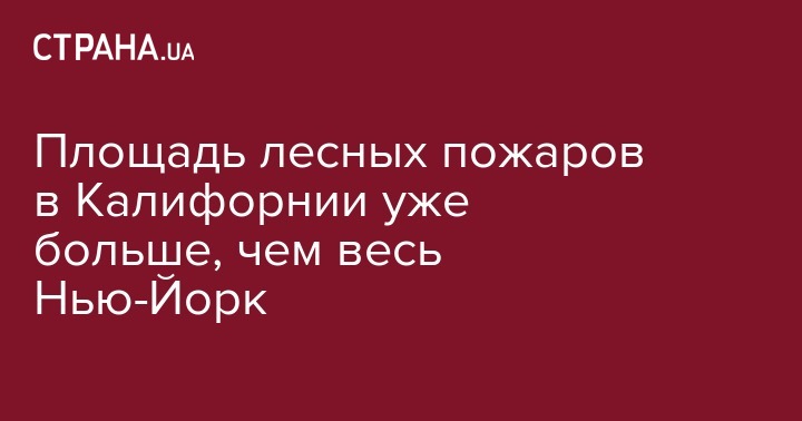 Общая площадь бушующих в настоящее время калифорнийских пожаров превысила 260 тысяч акров (более тысячи квадратных км). Она уже превысила крупнейшие города США – Нью-Йорк и Бостон.