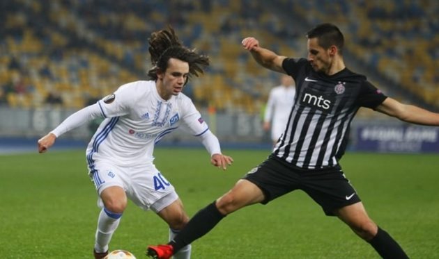 Шапаренко в матче против Партизана, фото: fcdynamo.kiev.ua