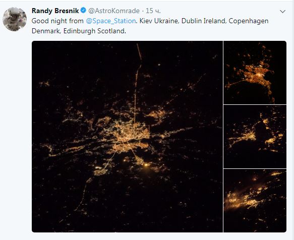 "Спокойной ночи с космической станции", - написал астронавт.