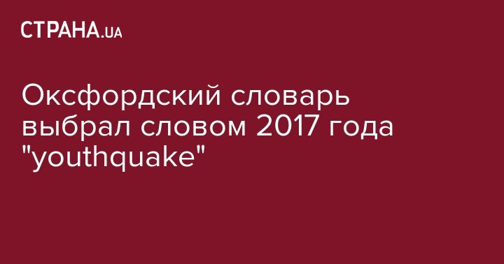 Знаменитый Оксфордский словарь выбрал словом 2017 года "youthquake". Об этом говорится на сайте словаря.