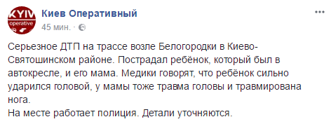 "Пострадал ребёнок, который был в автокресле, и его мама. Медики говорят, что ребёнок сильно ударился головой, у мамы тоже травма головы и травмирована нога" - говориться в сообщении.