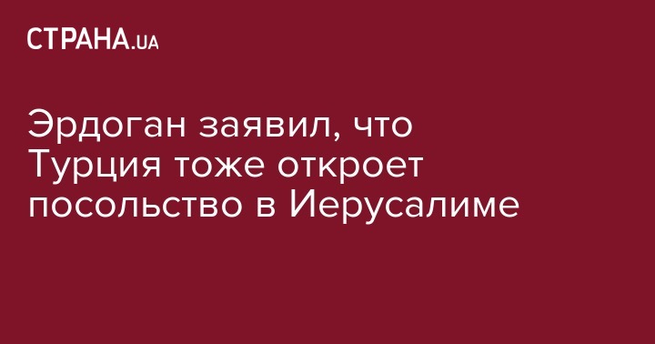 Президент Турции Реджеп Тайип Эрдоган сообщил, что Турция намерена открыть посольство в Восточном Иерусалиме. Об этом сообщает Reuters.