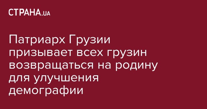 Католикос-Патриарх всея Грузии Илия II призвал всех грузин, проживающих за рубежом, вернуться на родину для улучшения демографической ситуации. Его слова приводит Интерфакс-Украина.