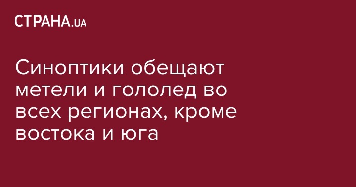 Во вторник, 19 декабря, на дорогах страны, кроме юга и востока, гололедица, ночью и утром в западных и северных областях порывы ветра 15-18 м/с, метели. На Черниговщине и Киевщине сильный снег.