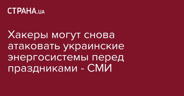 Хакеры могут снова атаковать украинские энергосистемы перед праздниками - СМИ