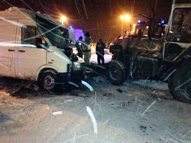 Выяснилось, что в результате столкновения микроавтобуса Volkswagen с экскаватором, который чистил заснеженные дороги, водитель иномарки зажало конструкциями транспортного средства.