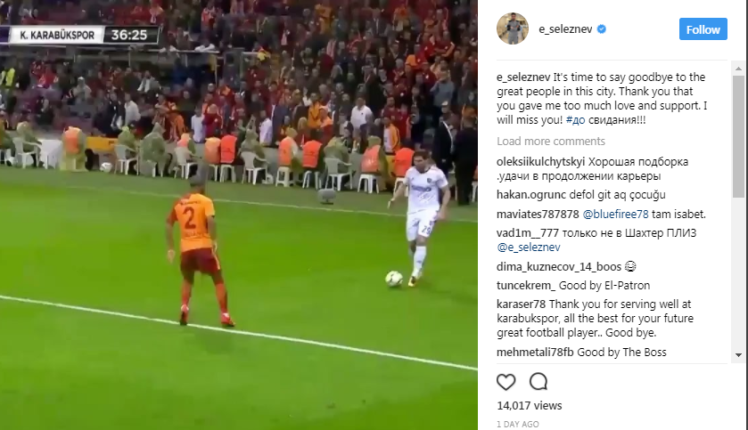 Украинский нападающий турецкого Карабюкспора Евгений Селезнев объявил о том, что покидает команду. Об этом 32-летний экс-форвард Шахтера написал на своей странице в Instagram.