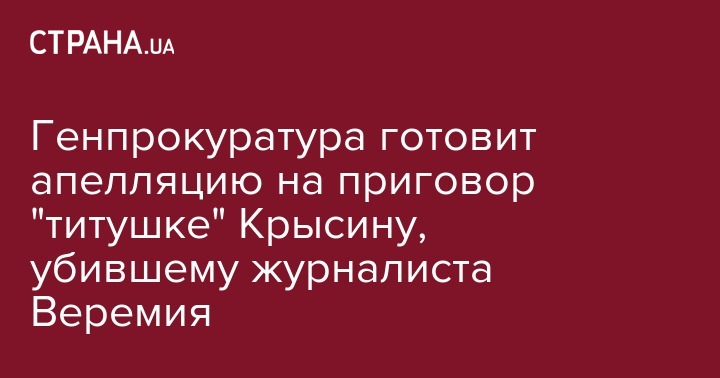 Сотрудники Генеральной прокуратуры Украины готовят апелляцию на приговор суда в отношении Юрия Крысина, который был признан виновным в нападении на журналиста газеты "Вести" Вячеслава Веремия 18 февраля 2014 года. В результате нападения журналист получил множество травм и скончался на операционном столе следующим утро.