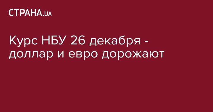 Во вторник, 26 декабря, Нацбанк установил курс гривны по отношению к иностранным валютам. По сравнению с предыдущим рабочим днем 22 декабря доллар и евро подорожали.