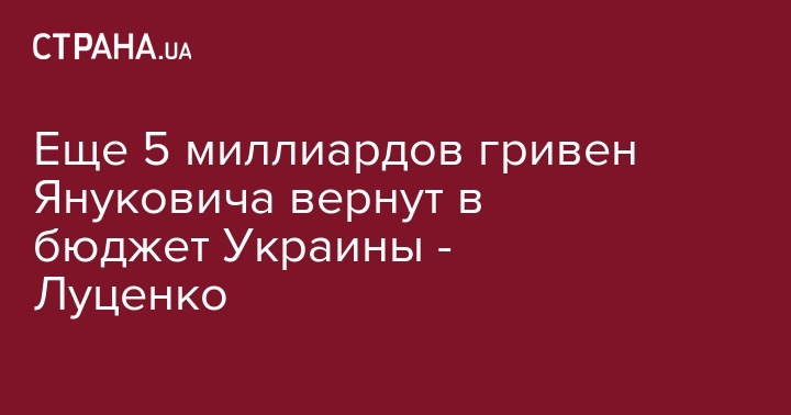 Еще 5 миллиардов гривен Януковича вернут в бюджет Украины - Луценко