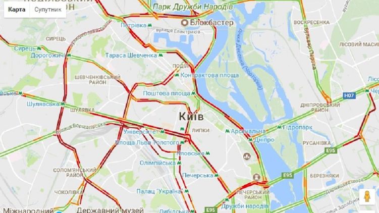 Киев в разгар рабочего дня сковало 8-балльными пробками