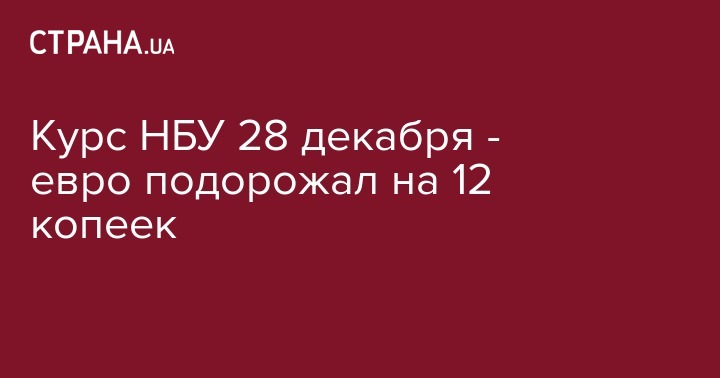 Курс НБУ 28 декабря - евро подорожал на 12 копеек