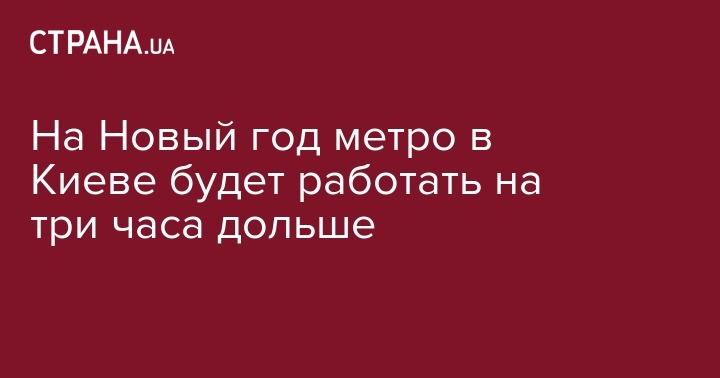 В Киеве в новогоднюю ночь работа метрополитена будет продлена на 3 часа. Об этом сообщила пресс-служба столичной подземки на своей странице в Facebook.