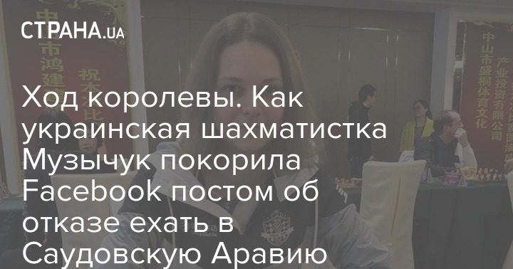 Украинская гроссмейстер Анна Музычук взорвала Facebook своим постом о том, что не поедет на чемпионат мира по быстрым шахматам в Саудовскую Аравию.