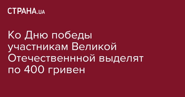 Ко Дню победы участникам Великой Отечественнной выделят по 400 гривен