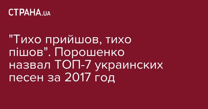Президент Петр Порошенко опубликовал на своей странице в Facebook рейтинг лучших украинских песен 2017 года.