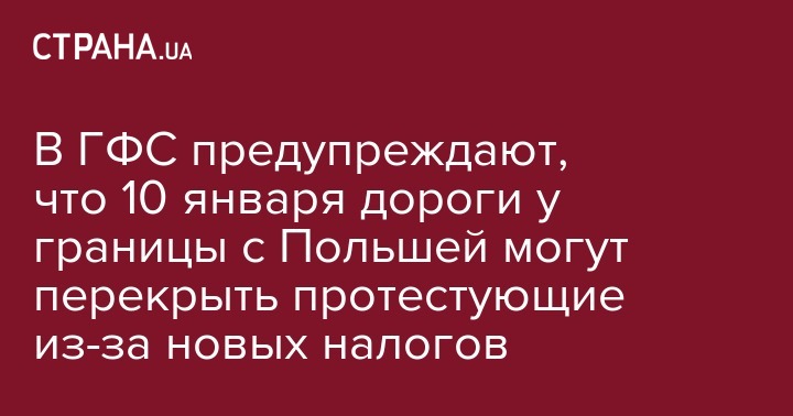 "По предварительной информации, распространенной в СМИ и соцсетях, 10 января текущего года запланировано блокирование дорог, ведущих к пунктам пропуска через госграницу Украины, в частности, "Рава-Русская – Гребенне", "Краковец – Корчова" и "Шегини – Медыка", - сообщила пресс-служба ГУ ГФС во Львовской области.