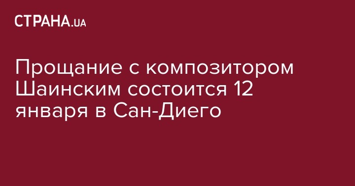 "Прощание пройдет в музыкальной студии Crown Dance в Сан-Диего вечером в пятницу", - сказала она. По словам Шаинской, вместе соберутся родственники, знакомые и близкие композитора. "Также приглашаются все желающие, кто захочет вспомнить его", - сказала вдова.